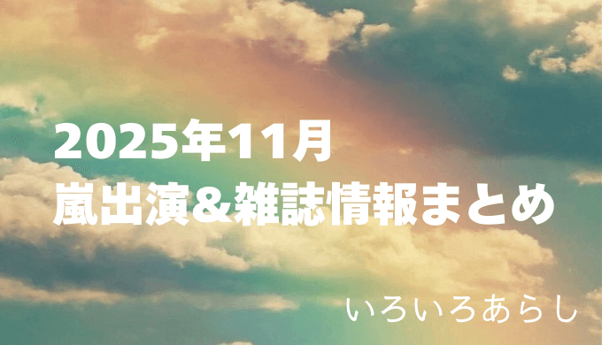 こちらでは2025年11月の嵐・出演情報を随時更新してまいります。気になったらちょこちょこ覗いてみてくださいね!